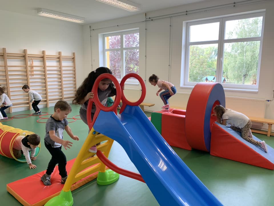 Az óvodánk egy minden igényt kielégítő, tágas, jól felszerelt tornaszobával rendelkezik, ahol az időjárástól függetlenül lehetőségünk van minden nap mozgásos játékokat, tevékenységeket végezni.