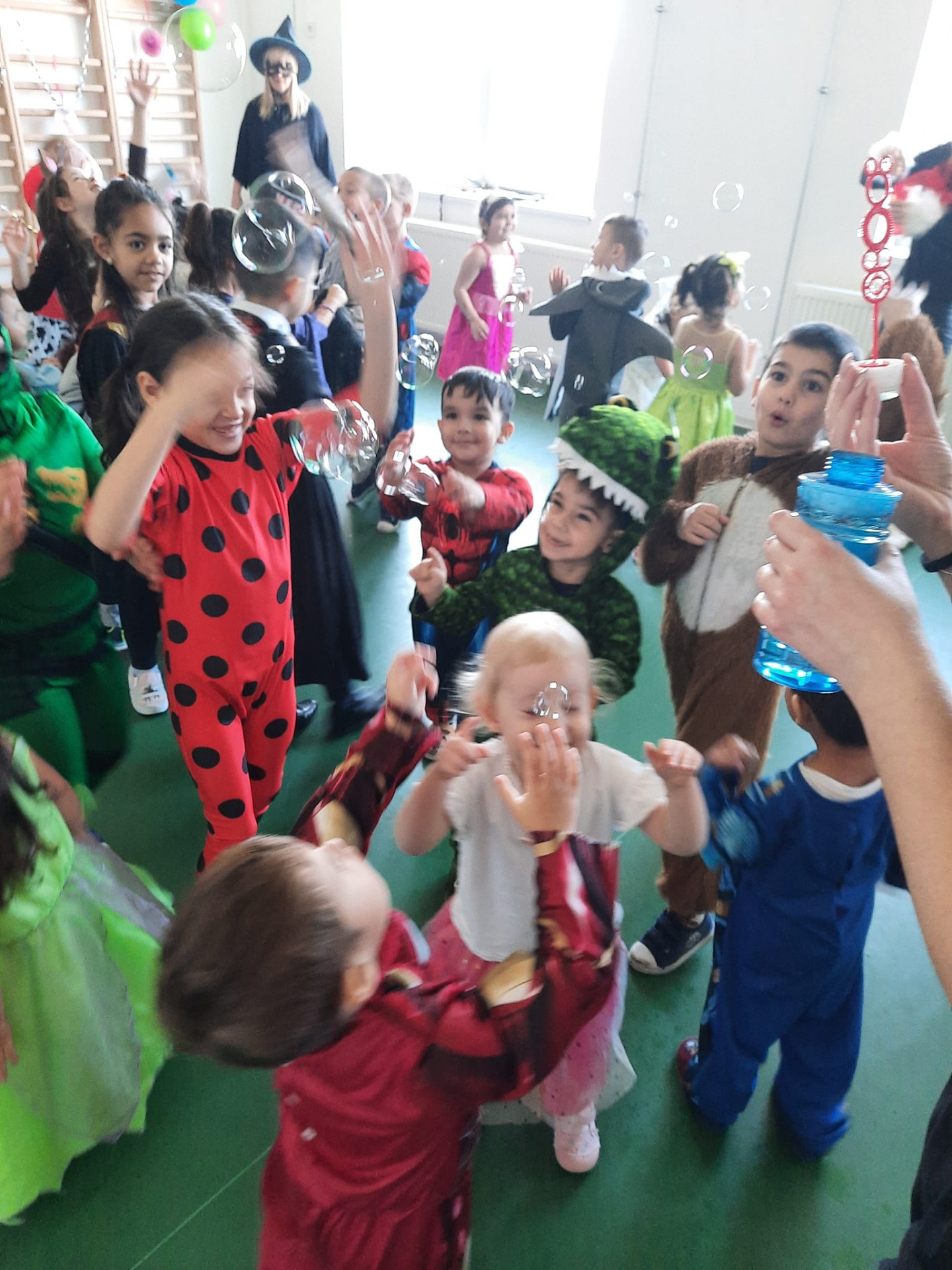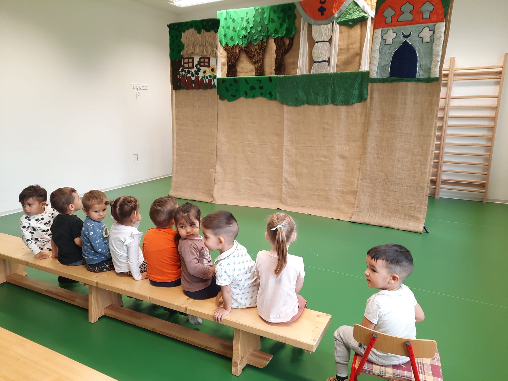 A csoportszobákban mindig elérhetőek számukra a bábok, a mesekönyvek, hogy a nap folyamán bármikor mesélhessenek, bábozhassanak, nézegethessenek mesekönyvet.